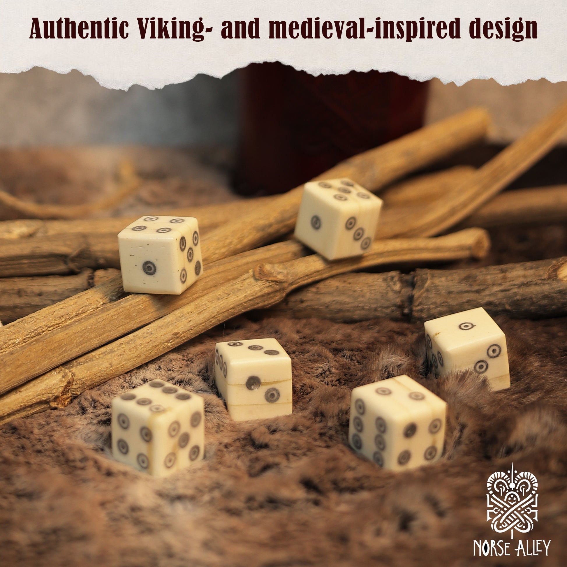 Bring a touch of Viking heritage to your games with this set of 6 handcrafted bone dice. Inspired by archaeological discoveries from the Viking and medieval eras, these dice capture the rustic charm and authenticity of ancient gaming pieces.